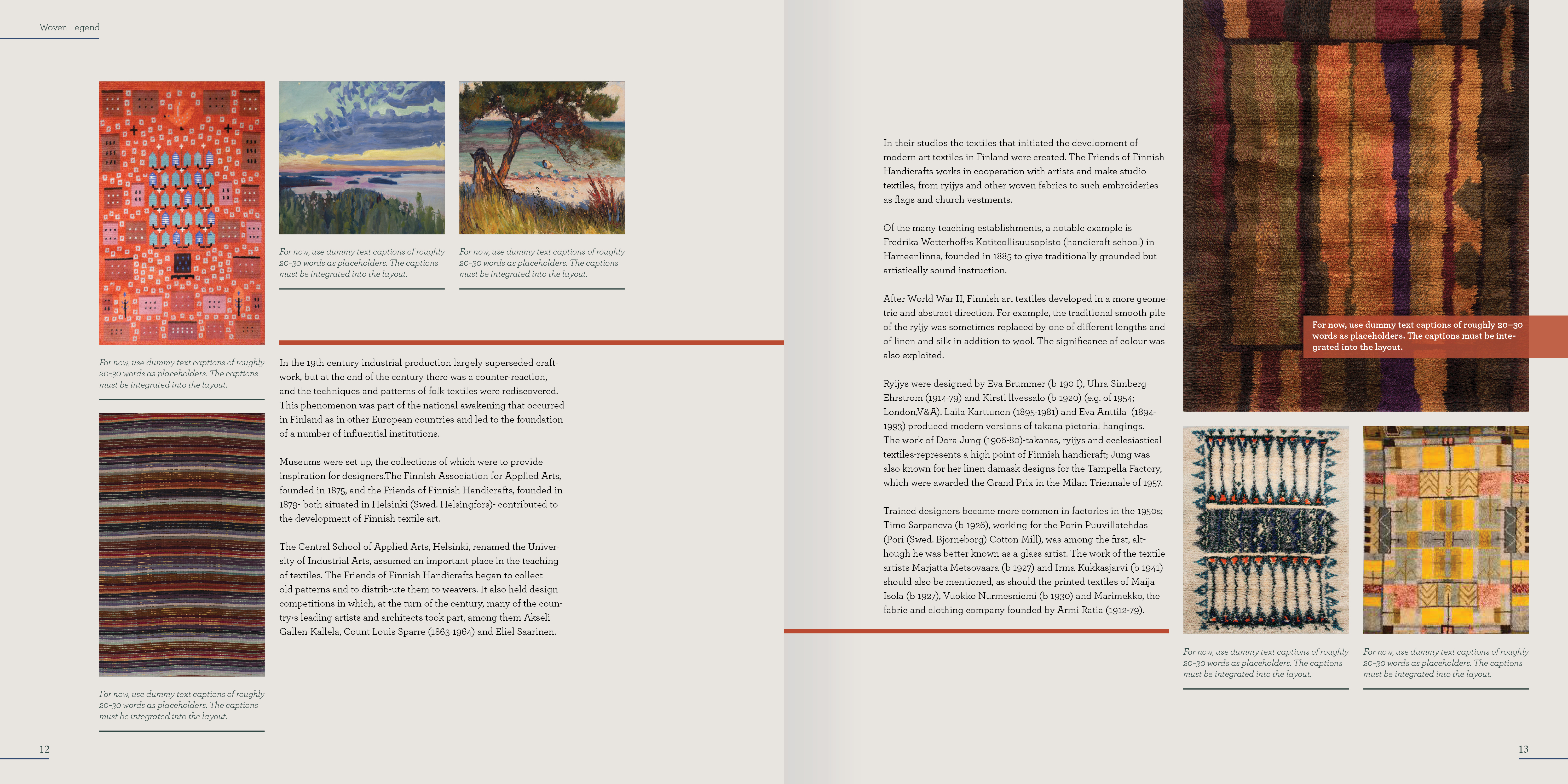 This is a book layout concept of Scandinavian textile design, a focus on this project was to create a clear and distingue layout system.The use of color and line were a big aspect of this design, often used to differentiate chapters from one another. Both elements were also used for hierarchy and as a decorative element.